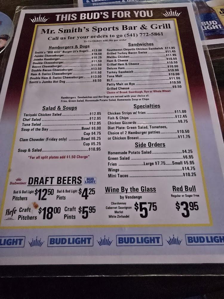 The menu at Mr. Smith's offers a delightful range of dishes. Burgers take the spotlight here, featuring options like the Jumbo Cheeseburger and Bacon Cheeseburger, each prepared to perfection. Sandwich lovers can relish tasty options such as the Grilled Turkey Bacon Swiss and Southwest Chipotle Chicken Sandwich.